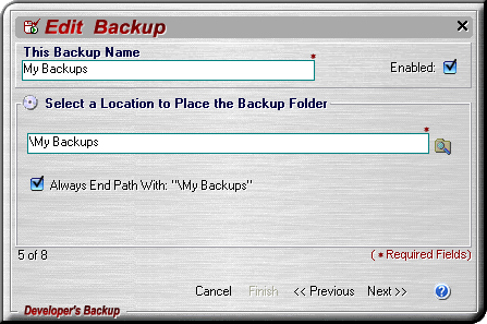 Click the folder icon and use the dialog to select a path pointing to the folder that will contain your backup files.