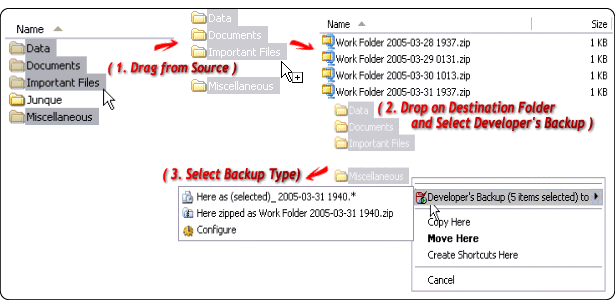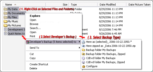 Developer's Backup is closely integrated with Windows Explorer. Here,
