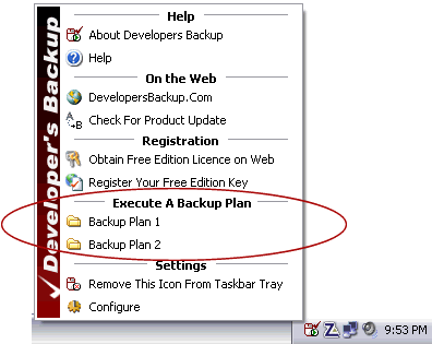 You can execute your pre-set Backup Plans from the Windows Task Bar.